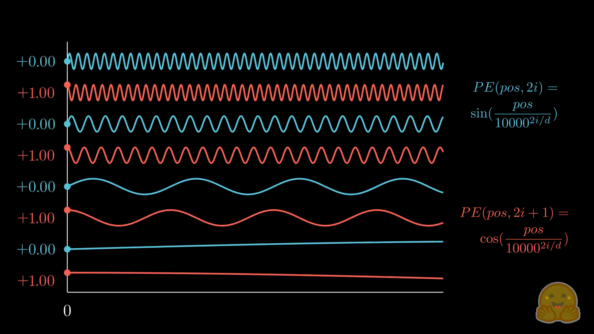 where - \(j\) is the position of the token in the sequence - \(i\) is the dimension index - \(d\) is the embedding dimension