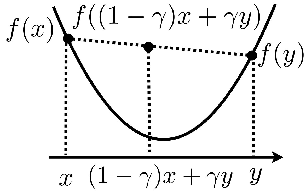 A function \(f: \mathcal{X} \rightarrow \mathbb{R}\) is convex if