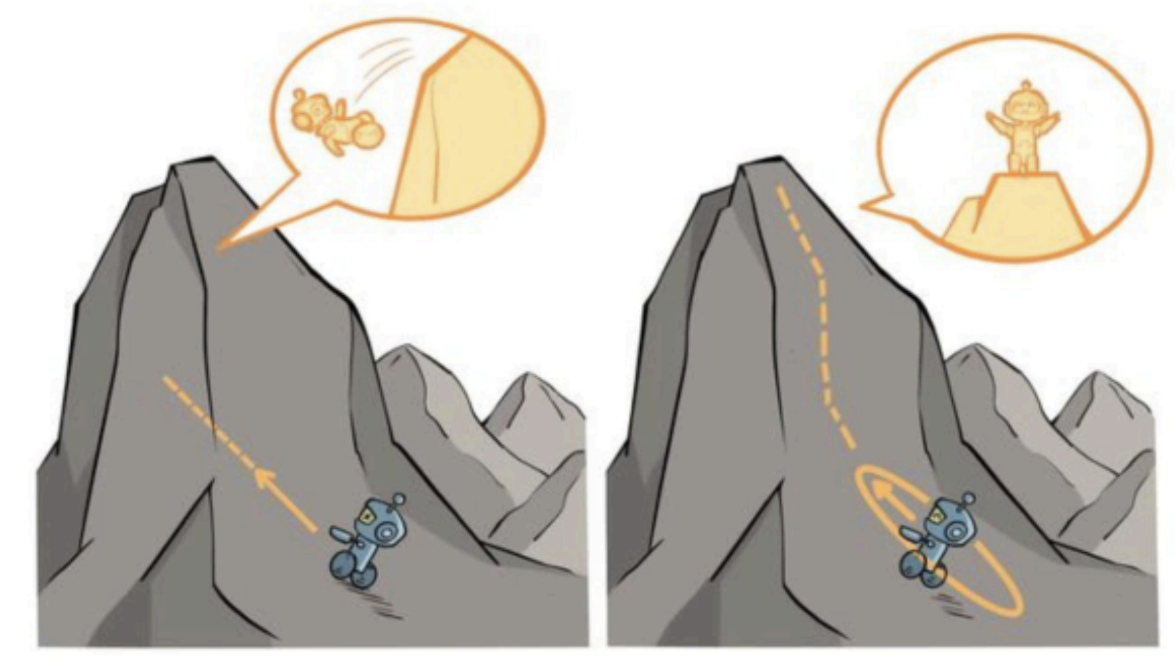 Unlike vanilla policy gradient methods that maintain proximity between policies in parameter space, PPO recognizes that small parameter changes can sometimes lead to dramatic performance differences. This sensitivity makes large step sizes risky in traditional policy gradient approaches, limiting their sample efficiency. PPO introduces mechanisms to prevent harmful policy updates, allowing for larger improvement steps while maintaining stability, which typically results in faster and more reliable performance gains. In summary, we have the following two main ideas: